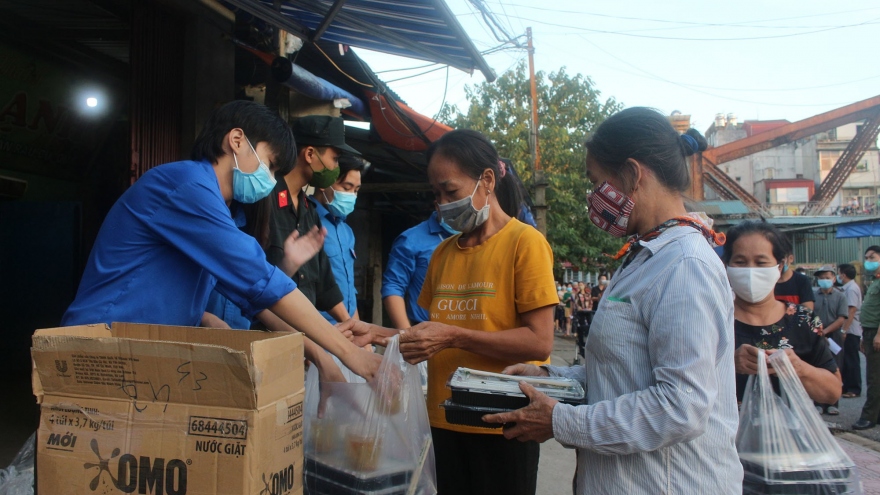 VOV.VN - Nhiều ngày nay, vào 5h chiều, người lao động tự do phường Phúc Xá lại có mặt ở cổng sau chợ Long Biên (phố Hồng Hà, phường Phúc Xá, quận Ba Đình) để nhận những suất cơm nghĩa tình.