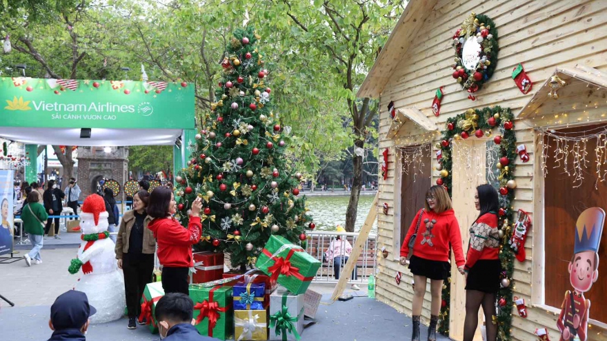 VOV.VN - Chuẩn bị đón không khí Noel, các tuyến phố như Hàng Mã, khu vực Nhà thờ Lớn Hà Nội hiện đang ngập tràn không khí sắc đỏ, sắc xanh của ngày lễ này. Nhiều du khách, các bạn trẻ đã đổ ra đường để được tận hưởng không khí mùa lễ hội, háo hức chờ đón Giáng sinh an lành sắp đến.