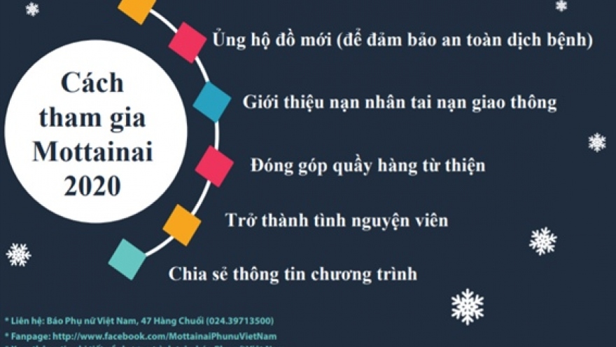 VOV.VN - Gala Giáng sinh Trao yêu thương - Nhận hạnh phúc Mottainai 2020 lần đầu được tổ chức trực tuyến diễn ra vào 19h30 tối 12/12 tới trên Báo điện tử Phụ nữ Việt Nam (phunuvietnam.vn) với sự tham gia của nhiều nghệ sĩ tên tuổi.