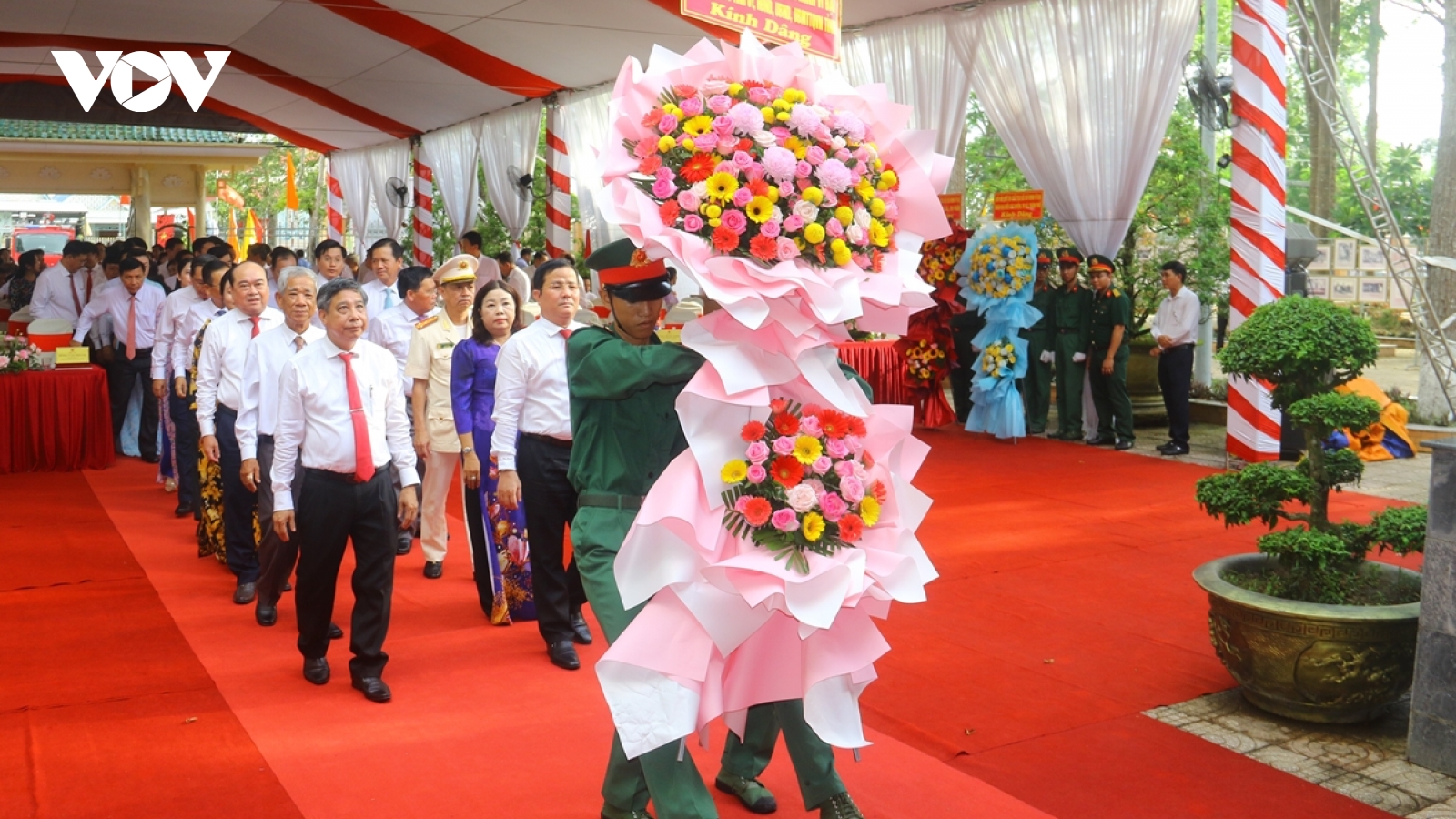 VOV.VN - Chiều 18/5, tại Di tích Lịch sử- Văn hóa cấp quốc gia Đền thờ Bác Hồ ở xã Lương Tâm, huyện Long Mỹ, Tỉnh ủy, HĐND, UBND, Ủy ban MTTQ Việt Nam tỉnh Hậu Giang long trọng tổ chức Lễ báo công, dâng hoa tưởng niệm Bác nhân kỷ niệm 135 năm Ngày sinh của Người (19/5/1890-19/5/2025).