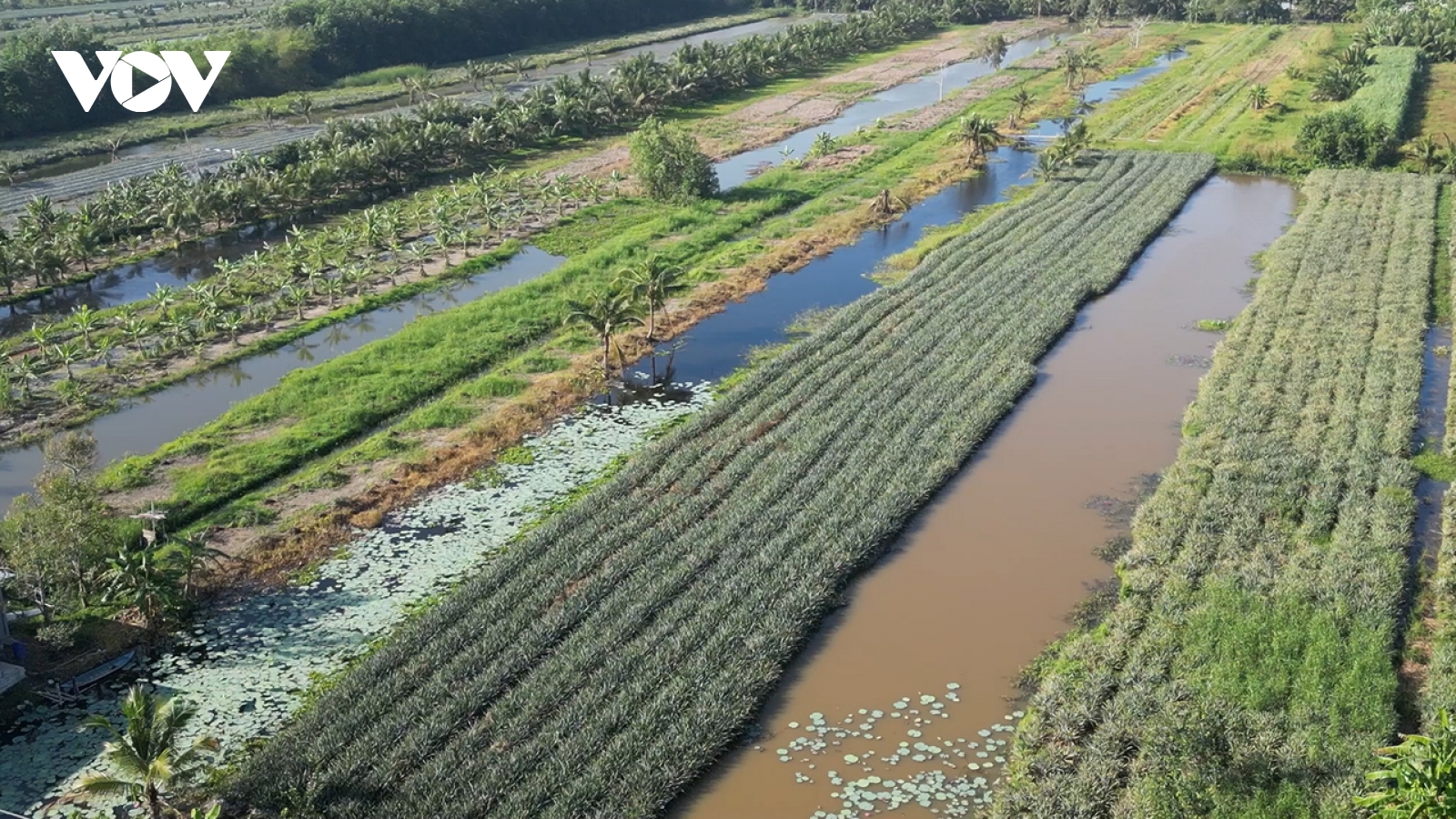 VOV.VN - Hiện nông dân trồng khóm MD2 (còn gọi là khóm Mỹ) ở huyện Phụng Hiệp, tỉnh Hậu Giang rất phấn khởi khi trái khóm vừa thu hoạch được doanh nghiệp thu mua với giá cao.