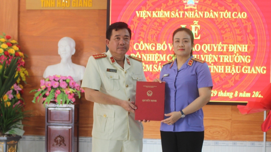 VOV.VN - Viện Kiểm sát nhân dân tỉnh Hậu Giang vừa tổ chức Lễ công bố Quyết định của Viện trưởng Viện Kiểm sát nhân dân tối cao về công tác cán bộ. Dự buổi lễ có bà Nguyễn Hải Trâm- Phó Viện trưởng Viện Kiểm sát nhân dân tối cao.