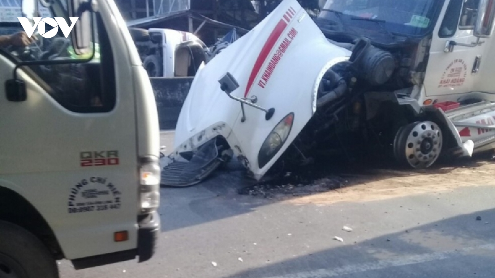 VOV.VN - Các cơ quan chức năng huyện Cái Bè, tỉnh Tiền Giang đang tiến hành xác minh làm rõ một xe đầu kéo đang lưu thông trên quốc lộ 1 bỗng dưng bị cháy.