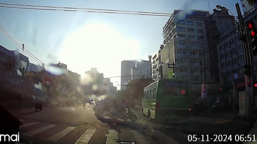 VOV.VN - Vụ việc xảy ra khoảng 7h ngày 5/11, tại giao lộ Cách Mạng Tháng Tám - Bùi Thị Xuân (Quận 1). Lái xe là N.T.B, chạy xe buýt số 69 (Bến xe buýt Sài Gòn – Khu dân cư Vĩnh Lộc) mang biển kiểm soát 51B-290.28 có hành vi vượt đèn đỏ.