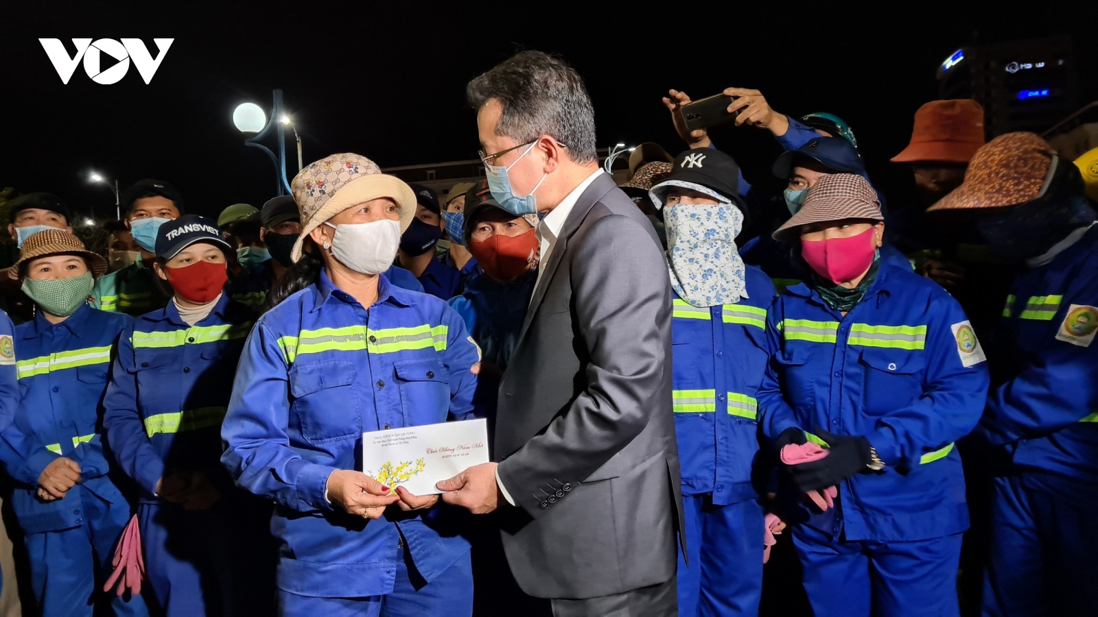 VOV.VN - Những công nhân thức trắng đêm để dọn rác, làm đẹp môi trường, đô thị để người dân đón Giao thừa, năm mới trong bầu không khí xanh, sạch và đẹp.