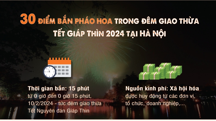 VOV.VN - TP.HCM sẽ bắn pháo hoa giao thừa Tết Nguyên đán 2024 ở 8 điểm, tăng 3 điểm so với Tết Nguyên đán năm 2023; trong đó 2 điểm tầm cao tại đầu đường hầm vượt sông Sài Gòn (TP Thủ Đức) và Khu tưởng niệm liệt sĩ Bến Dược (huyện Củ Chi).