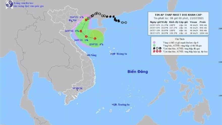 VOV.VN - Hồi 19h ngày 23/7, vị trí tâm áp thấp nhiệt đới ở khoảng 19,9 độ Vĩ Bắc; 106,9 độ Kinh Đông, ngay trên vùng biển từ Hải Phòng đến Ninh Bình. Sức gió mạnh nhất vùng gần tâm áp thấp nhiệt đới mạnh cấp 6 (40-50km/giờ), giật cấp 8.