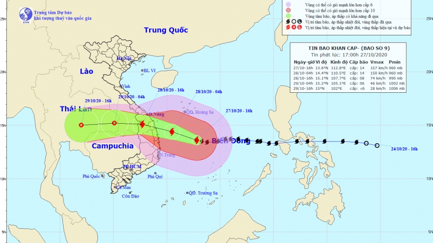 VOV.VN - Theo Trung tâm Dự báo Khí tượng thủy văn Quốc gia, bão số 9 vẫn đang di chuyển nhanh về phía các tỉnh miền Trung từ Đà Nẵng đến Phú Yên, vẫn có khả năng mạnh thêm, sức gió gần tâm bão cấp 13 - 14.