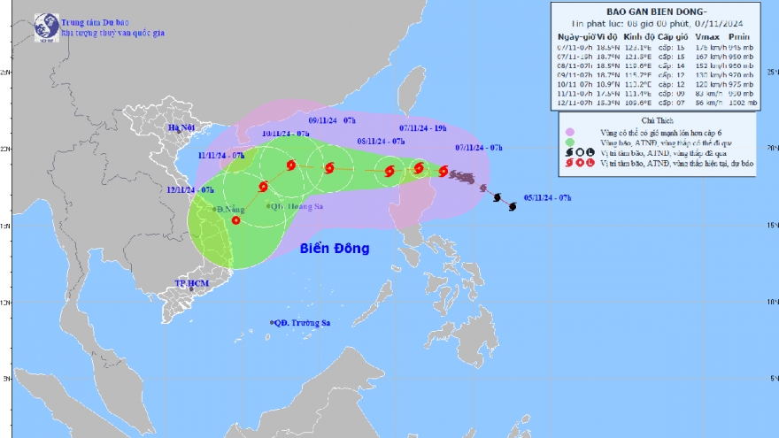 VOV.VN - Vị trí tâm bão Yinxing ở vào khoảng 18,5 độ Vĩ Bắc; 123,1 độ Kinh Đông, trên vùng biển phía Đông Bắc đảo Lu Dông. Sức gió mạnh nhất vùng gần tâm bão mạnh cấp 15 (167-183km/h), giật trên cấp 17.