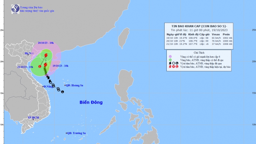 VOV.VN - Theo Trung tâm dự báo khí tượng thủy văn Quốc gia, trong 24 giờ tới, vùng áp thấp di chuyển chậm theo hướng Tây Bắc, mỗi giờ đi được khoảng 5km và có khả năng mạnh lên thành áp thấp nhiệt đới.