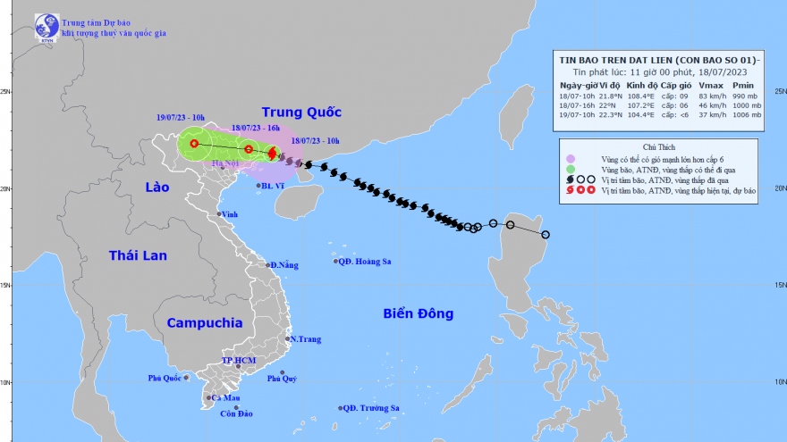 VOV.VN - Hồi 10h sáng nay, vị trí tâm bão ở vào khoảng 21,8 độ Vĩ Bắc; 108,4 độ Kinh Đông, trên đất liền khu vực phía Nam tỉnh Quảng Tây (Trung Quốc), cách Móng Cái (Quảng Ninh) khoảng 60km về phía Đông Đông Bắc.