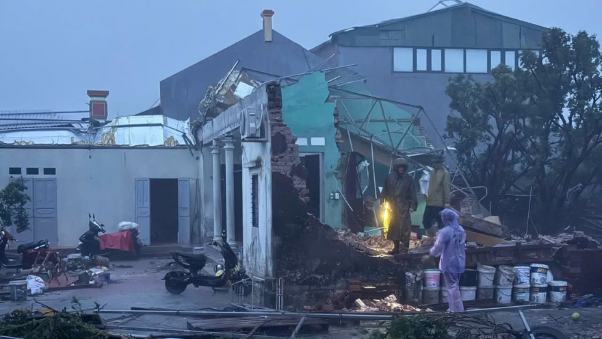VOV.VN - Rạng sáng 29/9, trên địa bàn xã Hoằng Phú, tỉnh Thanh Hóa do ảnh hưởng của cơn bão số 10, đã xảy ra mưa lớn kèm gió giật dữ dội, khiến nhiều nhà dân bị tốc mái, hư hỏng nặng, một số căn sập đổ hoàn toàn.