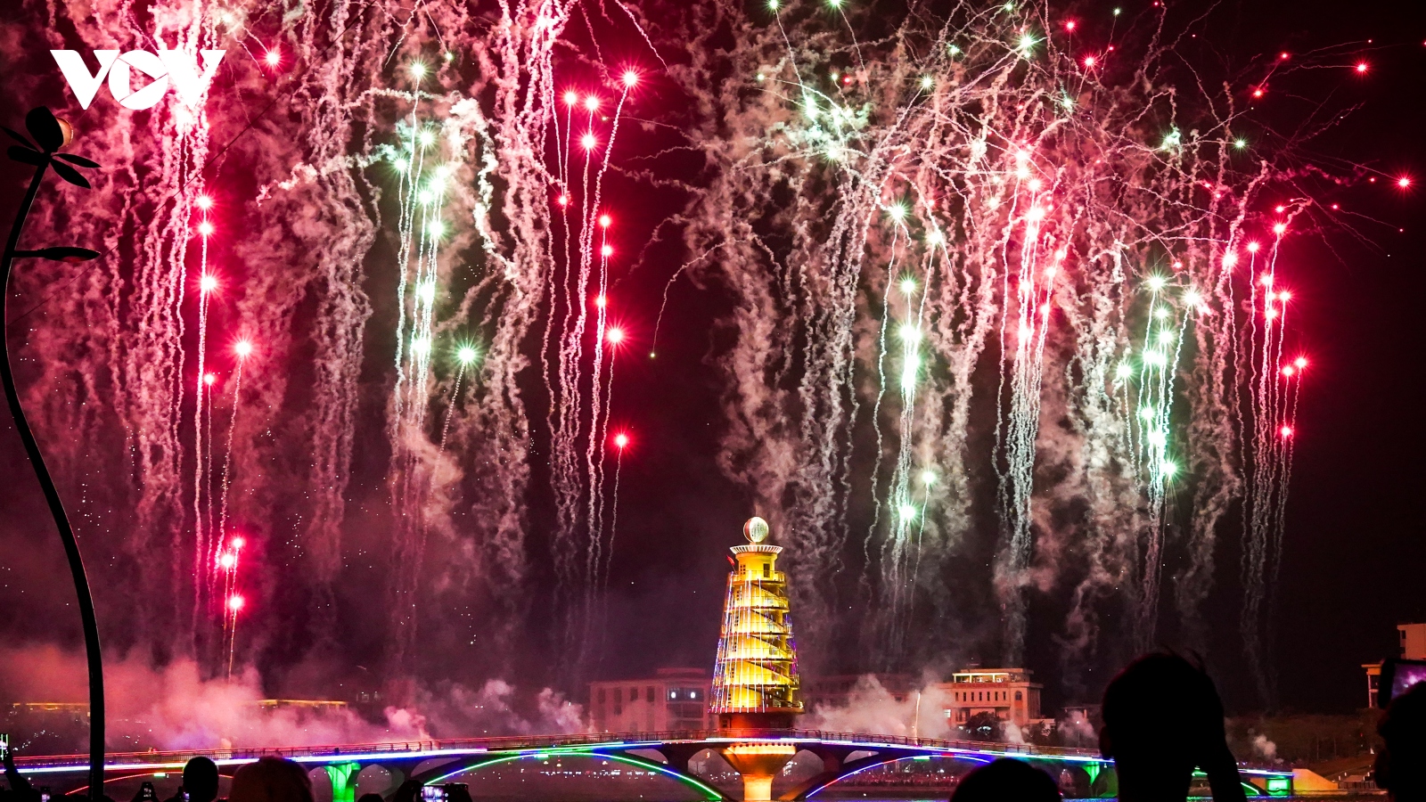 VOV.VN - Tối 28/4, hàng ngàn người dân và du khách đã đổ về công viên Văn Lang (Việt Trì – Phú Thọ) để chiêm ngưỡng màn bắn pháo hoa tầm cao kéo dài 15 phút trước ngày khai mạc Lễ hội Đền Hùng.