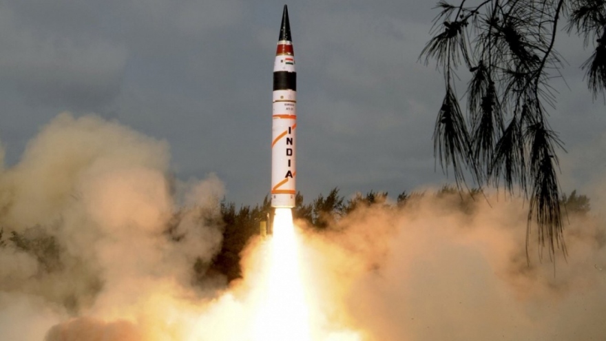 VOV.VN - Ấn Độ vừa thử nghiệm tên lửa đạn đạo liên lục địa (ICBM) Agni-5 có khả năng hạt nhân, tầm bắn 5.000km. Tên lửa được phóng từ hòn đảo Abdul Kalam ngoài khơi phía Đông và rơi xuống Vịnh Bengal “với độ chính xác cao”.