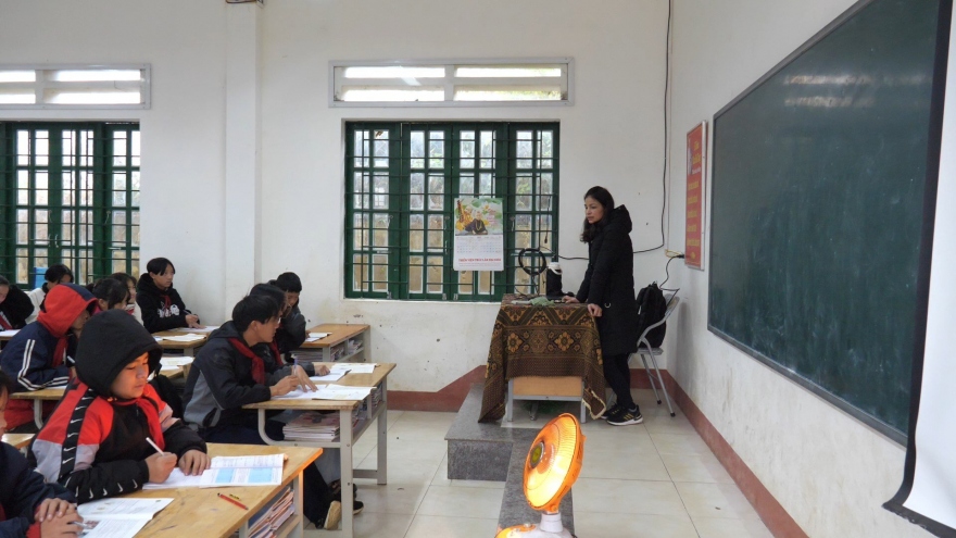 Giữ ấm cho học sinh đến lớp dưới thời tiết 6 độ C ở Sa Pa