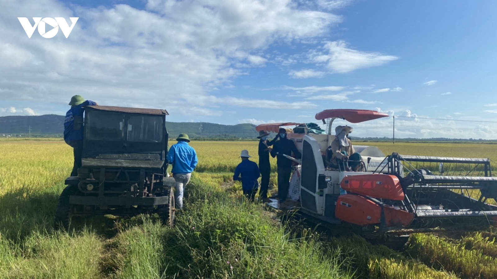 VOV.VN - Ngày 29/8, lực lượng thanh niên xã Vạn Trạch, huyện Bố Trạch tổ chức ra đồng thu hoạch lúa cho người dân của thôn Rẫy đang bị phong tỏa theo Chỉ thị 16 của Thủ tướng Chính phủ.