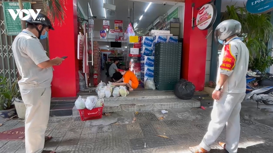 VOV.VN - Ở các phường của quận Hải Châu, thành phố Đà Nẵng không hiếm gặp hình ảnh các thành viên Tổ Quy tắc đô thị tay xách nách mang chuyển hàng đến từng hộ gia đình.