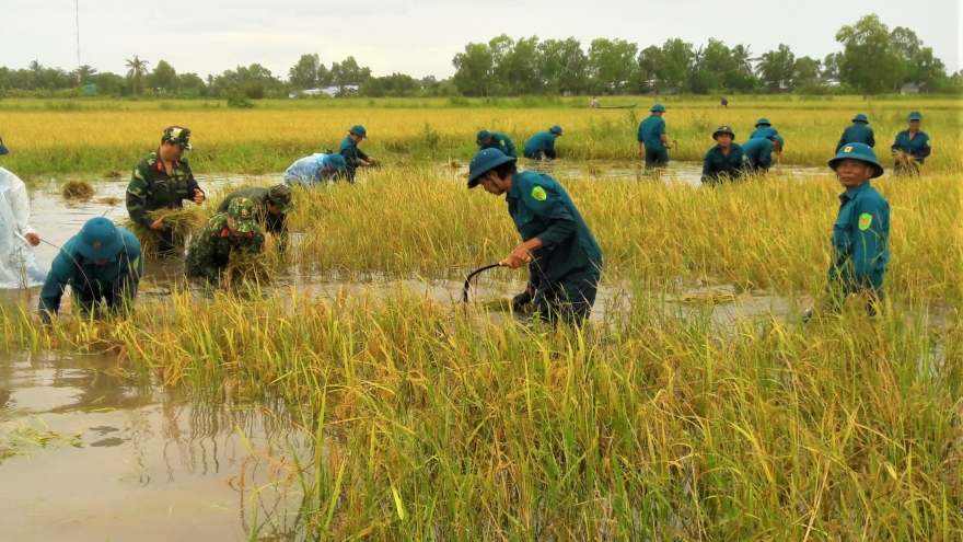 VOV.VN - Trước tình hình mưa lớn kéo dài gây ngập lụt, ảnh hưởng nghiêm trọng đến sản xuất của người dân, Ban CHQS huyện Trần Văn Thời, Cà Mau đã huy động cán bộ, sĩ quan giúp người dân khắc phục.