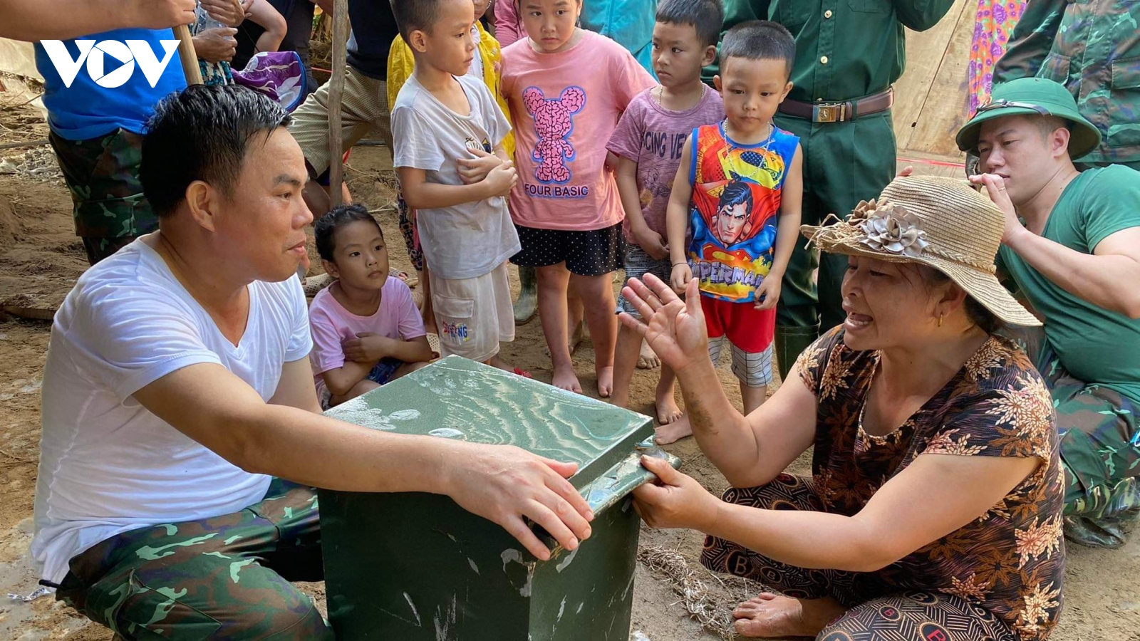 VOV.VN - Trong lúc làm nhiệm vụ, lực lượng cán bộ, chiến sỹ Bộ CHQS tỉnh Nghệ An đã phát hiện 1 két sắt bị lũ cuốn trôi và vùi sâu dưới lớp đất. Ngay sau đó, lực lượng đã trao trả lại cho người dân. Anh Lương Văn Mặn, chủ nhân két sắt, mừng rơi nước mắt và gửi lời cảm ơn đến các cán bộ, chiến sỹ.