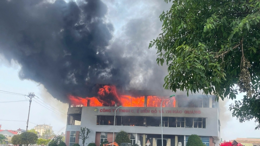 Cháy lớn tại công ty chế biến gỗ, cột khói đen bốc cao hàng chục mét