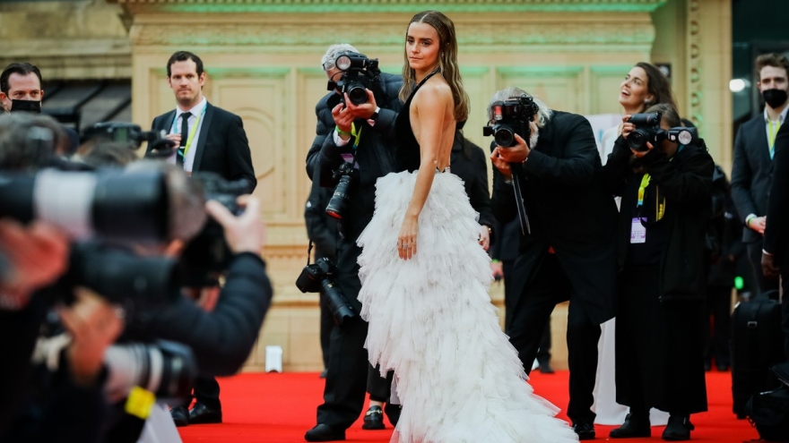 VOV.VN - Nữ diễn viên Emma Watson trang điểm tông màu trầm nhẹ nhàng, diện đầm hở bạo, khoe lưng trần quyến rũ trên thảm đỏ BAFTA 2022 diễn ra ở London mới đây.
