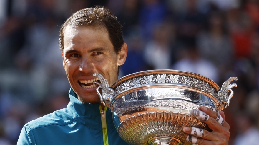 VOV.VN - Rafael Nadal đã có chiến thắng áp đảo 3-0 trước Casper Ruud để đăng quang Roland Garros 2022, danh hiệu thứ 14 của anh ở Grand Slam trên mặt sân đất nện.