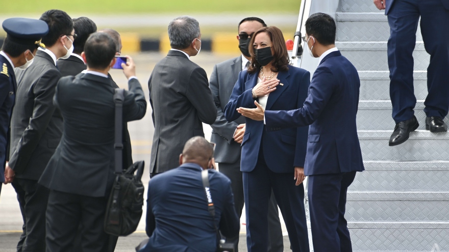 VOV.VN - Phó Tổng thống Mỹ Kamala Harris đã hạ cánh ở Singapore cách đây vài phút, chính thức bắt đầu chuyến công du Đông Nam Á, cũng là chuyên công du đầu tiên ngoài châu Mỹ của bà kể từ khi tuyên thệ nhậm chức hồi tháng 1.