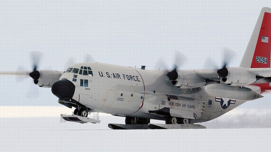 VOV.VN - Nhờ được thiết kế thêm bộ ván trượt mới, máy bay vận tải huyền thoại LC-130 của không quân Mỹ có thể dễ dàng hạ cánh trên mặt băng tuyết giống như trên đường băng thông thường.