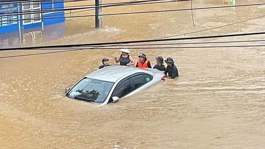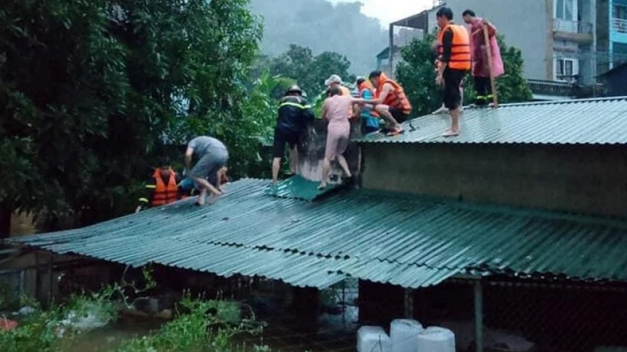 VOV.VN - Mưa lớn kéo dài 2 ngày qua khiến nhiều tuyến đường ở TP Hà Giang ngập sâu, nước lũ dâng nhanh nên nhiều gia đình không kịp sơ tán, phải trèo lên mái nhà chờ cứu hộ.