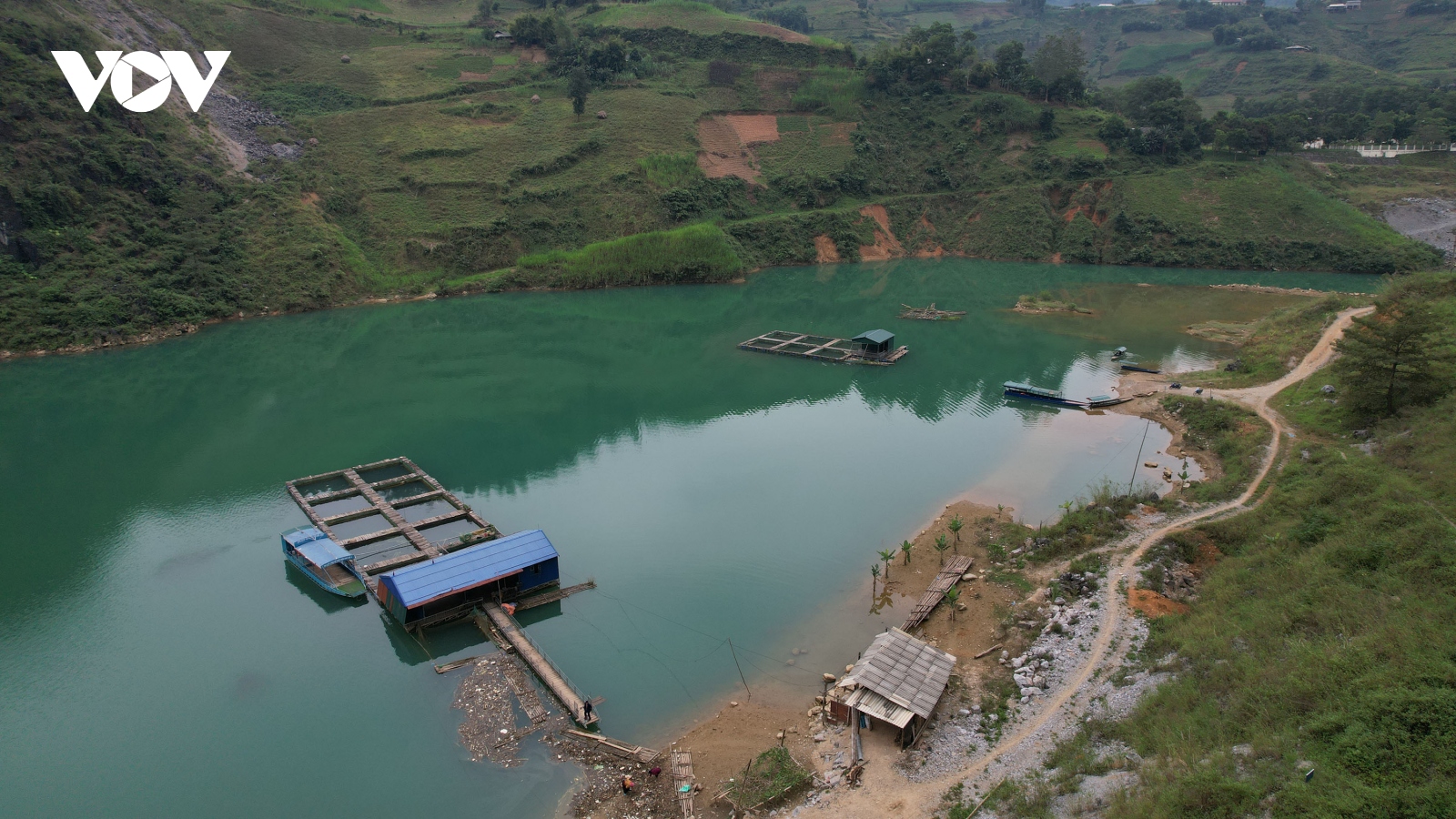 VOV.VN - Dòng sông Nho Quế như dải lụa xanh biếc uốn lượn, người dân xã Khâu Vai đã tận dụng vùng nước lòng hồ thủy điện để nuôi cá lồng mang lại nguồn thu nhập đáng kể, góp phần xóa đói, giảm nghèo.