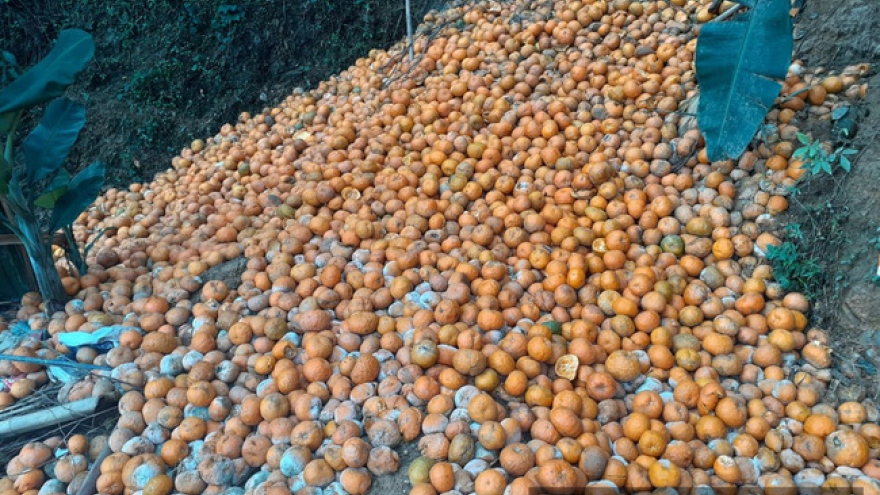 VOV.VN - Do ảnh hưởng của thời tiết và sức tiêu thụ giảm bởi dịch Covid-19, đã làm 3.000 tấn cam sành của của người dân huyện Bắc Quang và Quang Bình (Hà Giang) rụng đỏ gốc, tràn xuống cả đường đi.