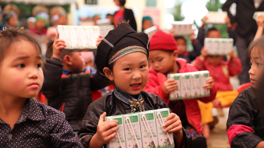 VOV.VN - Năm 2020, Vinamilk và Quỹ sữa Vươn cao Việt Nam đã dành tặng 94.000 ly sữa, tương đương khoảng 677 triệu đồng cho 1.045 trẻ em có hoàn cảnh khó khăn tại tỉnh Hà Giang.