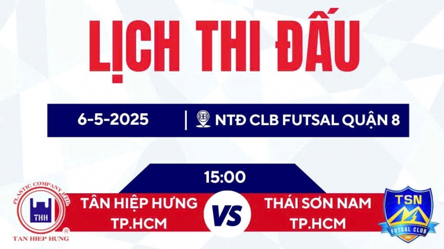 VOV.VN - Lịch thi đấu Futsal HDBank vô địch quốc gia 2025 hôm nay 6/5, người hâm mộ được chứng kiến màn so tài của Tân Hiệp Hưng TP.HCM với Thái Sơn Nam TP.HCM và Luxury Hạ Long với Sahako.