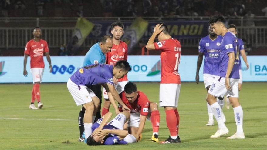 VOV.VN - Hà Nội FC xác nhận tiền vệ Đỗ Hùng Dũng bị gãy 1/3 dưới xương cẳng chân phải sau tình huống chấn thương trong trận đấu với TPHCM trong khuôn khổ vòng 5 V-League 2021.