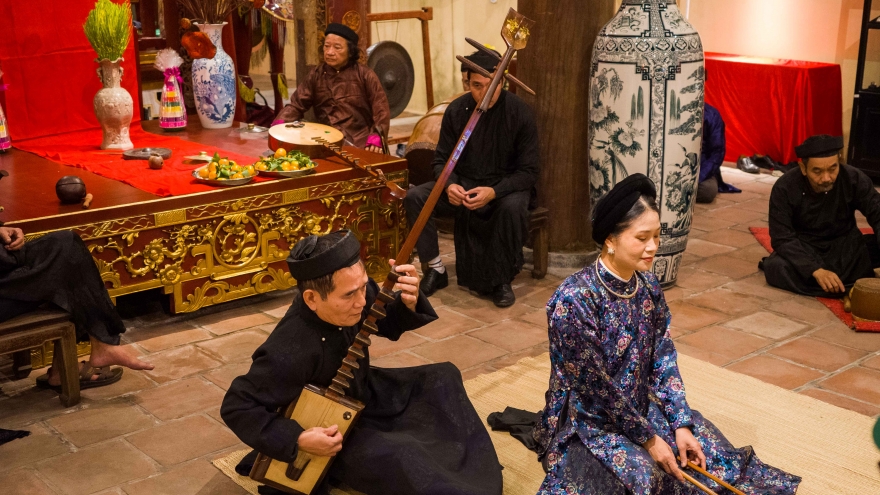 VOV.VN - Nhân kỷ niệm 20 năm Ngày Di sản Văn hóa Việt Nam, tối 22/11/2025, Đình Kim Ngân trở thành không gian sống động của âm nhạc cổ truyền Thăng Long – Hà Nội, với các nghệ sĩ Đông Kinh Cổ Nhạc biểu diễn trực tiếp năm loại hình dân gian, đưa khán giả trở về ký ức văn hóa.