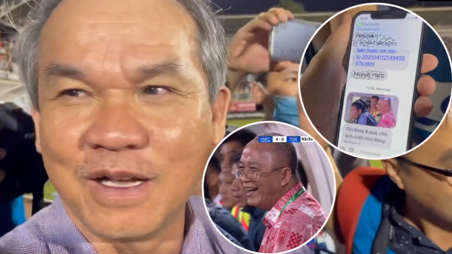 VOV.VN - Sau trận HAGL 4-3 Nam Định, ông Đoàn Nguyên Đức đã "cà khịa" Chủ tịch của Than Quảng Ninh - Phạm Thanh Hùng, mang hình ảnh của ông Hùng ra nói vui với cánh phóng viên.