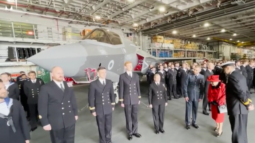 VOV.VN - Chiến hạm hiện đại HMS Queen Elizabeth đã long trọng đón tiếp Nữ hoàng Anh Elizabeth đến thăm hôm 22/5 trước khi tàu lên đường tới Ấn Độ Dương-Thái Bình Dương. Qua clip sau chúng ta thấy được hình ảnh bên trong tàu sân bay này. Trên đó có tiêm kích Anh và thủy quân lục chiến Mỹ.
