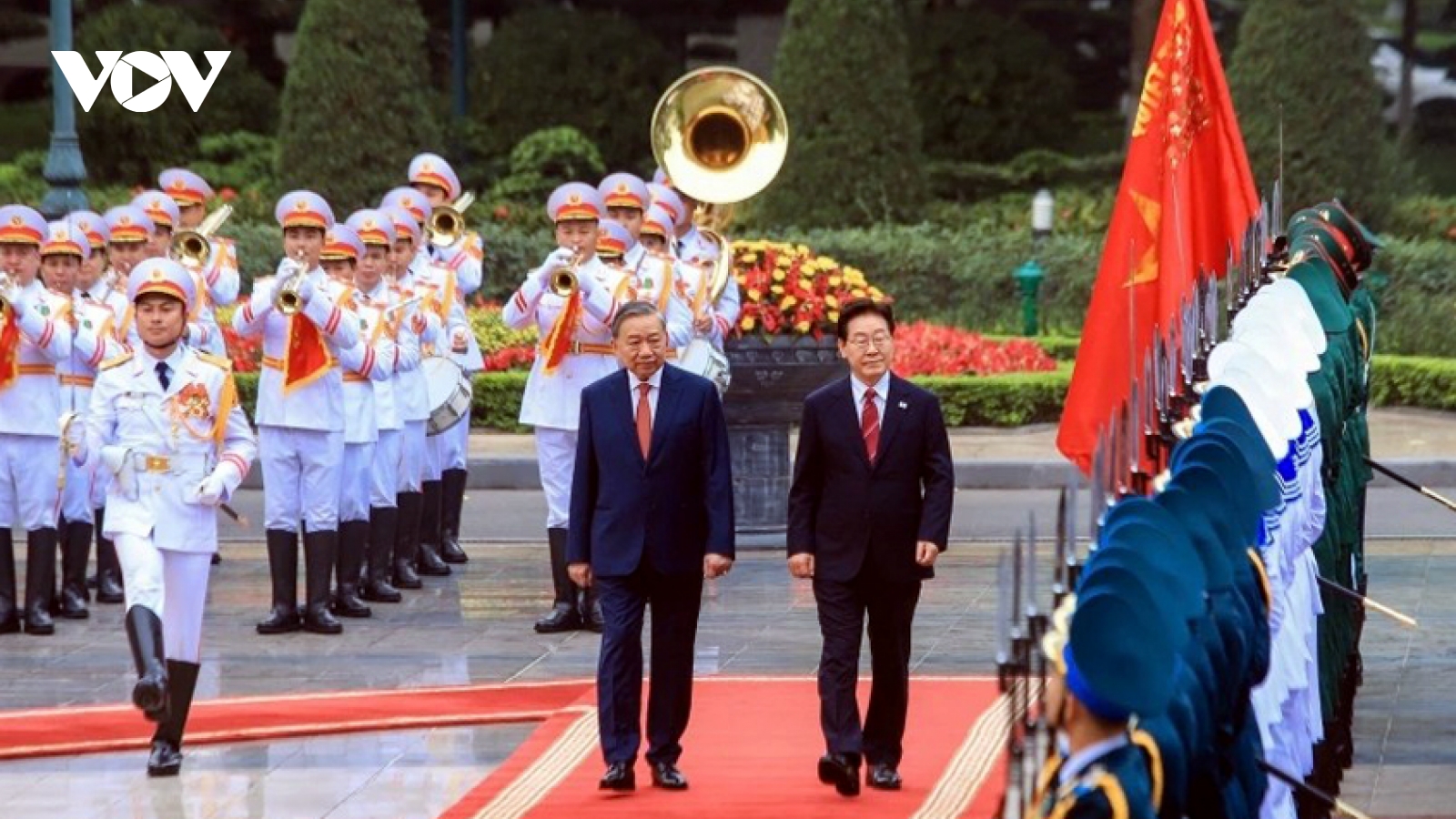 VOV.VN - Tiếp tục các hoạt động trong khuôn khổ chương trình thăm cấp Nhà nước tới Việt Nam, sáng 24/4, Tổng Bí thư, Chủ tịch nước Tô Lâm cùng Phu nhân và Tổng thống Hàn Quốc Lee Jae Myung cùng Phu nhân tới dự Chương trình hữu nghị đặc biệt tại Hoàng thành Thăng Long.