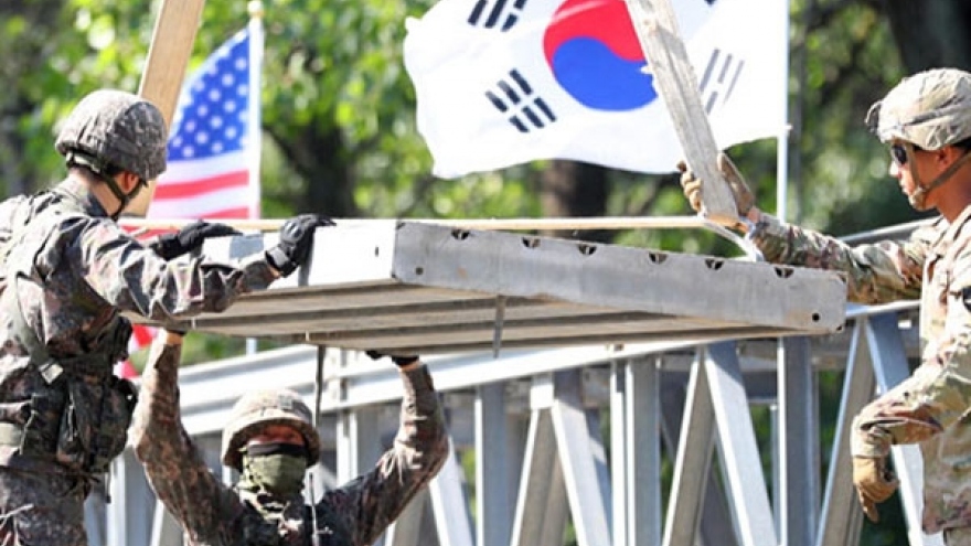 VOV.VN - Ngày 26/8, Cuộc tập trận sở chỉ huy liên quân Hàn-Mỹ nửa cuối năm 2021 đã kết thúc. Quân đội Hàn Quốc cho biết liên quân hai nước đã tiến hành tập trận theo đúng các kịch bản gồm phần một (phòng thủ) và phần hai (phản công).