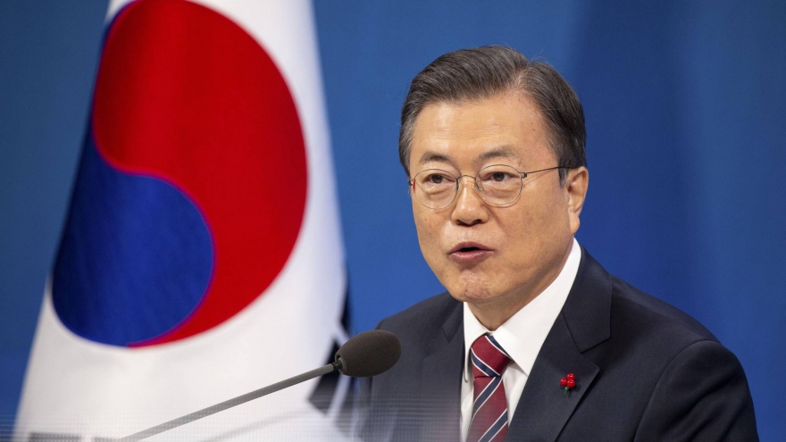 VOV.VN - Tổng thống Hàn Quốc Moon Jae-in hôm nay đã tổ chức buổi họp báo đầu năm tại Phủ Tổng thống, công bố lập trường về các vấn đề nổi cộm ở các lĩnh vực chính trị, kinh tế, phòng dịch.