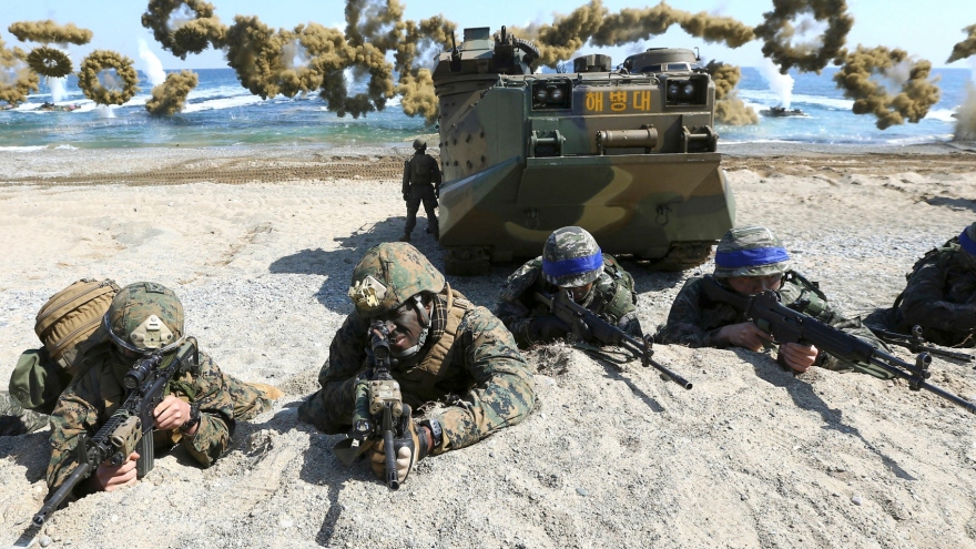 VOV.VN - Ngày 16/8, Quân đội Hàn Quốc và Mỹ chính thức tiến hành cuộc tập trận chung và kéo dài tới ngày 26 tới. Cuộc tập trận này từ trước đã vấp phải sự phản đối mạnh mẽ từ Triều Tiên.