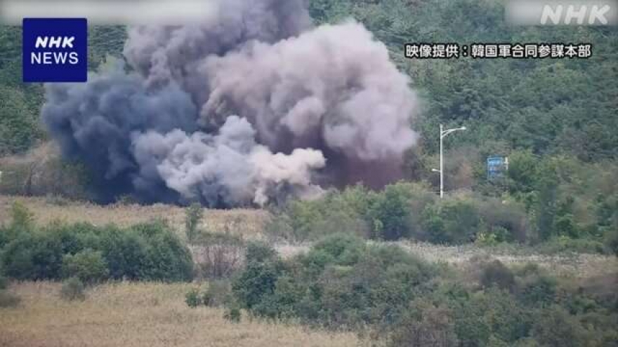 VOV.VN - Quân đội Hàn Quốc vừa xác nhận Triều Tiên đã cho nổ tung một số đoạn đường bộ và đường sắt liên Triều ở phía bên trong đường biên giới. Để đáp trả, quân đội Hàn Quốc đã bắn cảnh cáo về phía nam ranh giới quân sự phân chia hai nước.