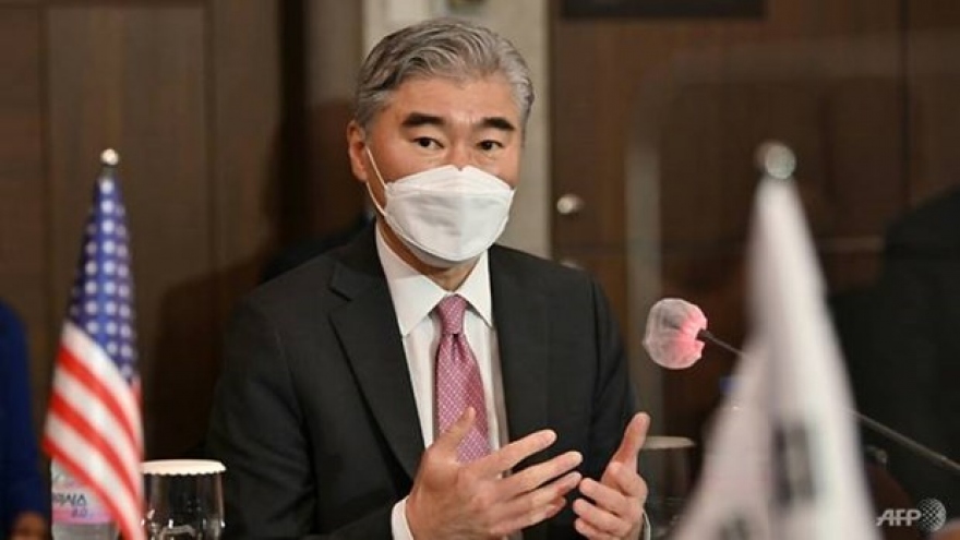 VOV.VN - Đặc phái viên của Mỹ về Triều Tiên Sung Kim ngày 13/12 đã gặp Đặc phái viên của Hàn Quốc về các vấn đề hòa bình và an ninh trên bán đảo Triều Tiên và Giám đốc Cục các vấn đề châu Á và Đại dương của Bộ Ngoại giao Nhật Bản tại Indonesia.