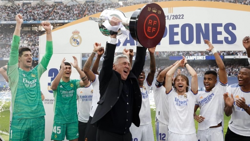 VOV.VN - Chức vô địch La Liga 2021/2022 của Real Madrid đã đưa Carlo Ancelotti đi vào lịch sử khi trở thành HLV đầu tiên đăng quang ở cả 5 giải VĐQG hàng đầu châu Âu.