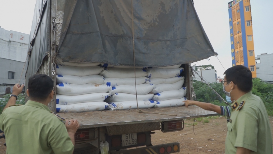 VOV.VN - Làm việc với cơ quan công an, tài xế khai nhận đã chở hàng từ tỉnh Bình Dương, Đồng Nai tập kết về TPHCM chuẩn bị giao cho người nhận để phân phối ra thị trường.