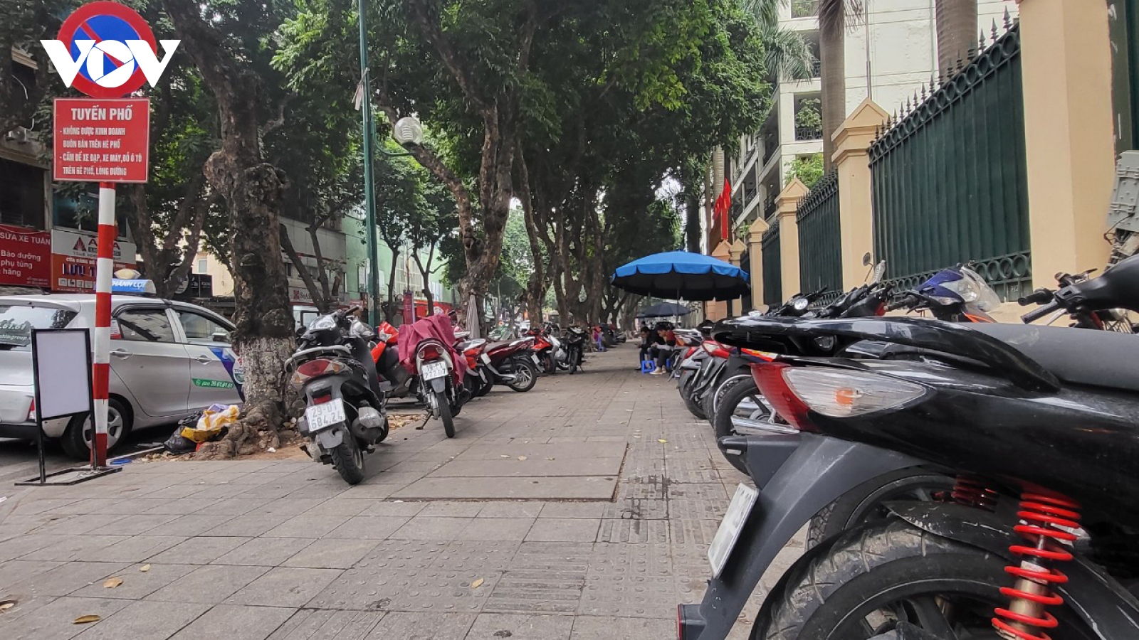 VOV.VN - Dù đã có biển cấm, nhưng trên nhiều tuyến đường của Hà Nội, người dân vẫn tiếp tục lấn chiếm vỉa hè, lòng đường để kinh doanh, dừng đỗ xe trái phép và vứt rác thải bừa bãi.
