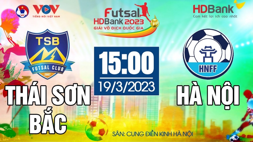 VOV.VN - Xem trực tiếp trận đấu Thái Sơn Bắc vs Hà Nội trong khuôn khổ giải Futsal HDBank VĐQG 2023, diễn ra lúc 15h00 ngày 19/3 tại Cung Điền kinh Mỹ Đình, Hà Nội.