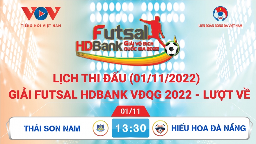 Lịch thi đấu giải Futsal HDBank VĐQG 2022 hôm nay 1/11VOV.VN - Lịch thi đấu giải Futsal HDBank VĐQG 2022 hôm nay 1/11, Thái Sơn Nam so tài Hiếu Hoa Đà Nẵng.