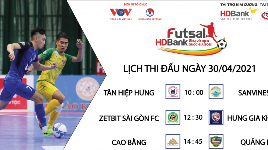 VOV.VN - Lịch thi đấu Giải Futsal HDBank VĐQG 2021 hôm nay 29/4, vòng đấu cuối cùng của giai đoạn lượt đi sẽ bắt đầu với những trận đấu góp mặt Thái Sơn Nam và Thái Sơn Bắc.