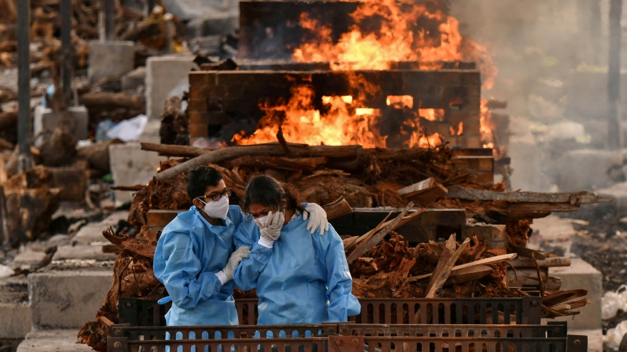 VOV.VN - Cảnh tượng chết chóc đang bao trùm New Delhi khi 1 người điều phối hỏa táng cho biết họ có thể phải hỏa táng trên đường vì không còn chỗ trống nếu số người chết vì Covid-19 tiếp tục tăng cao.